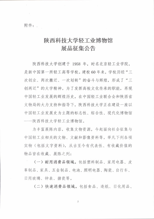关于转发《陕西大学轻工业博物馆展品征集公告》的通知