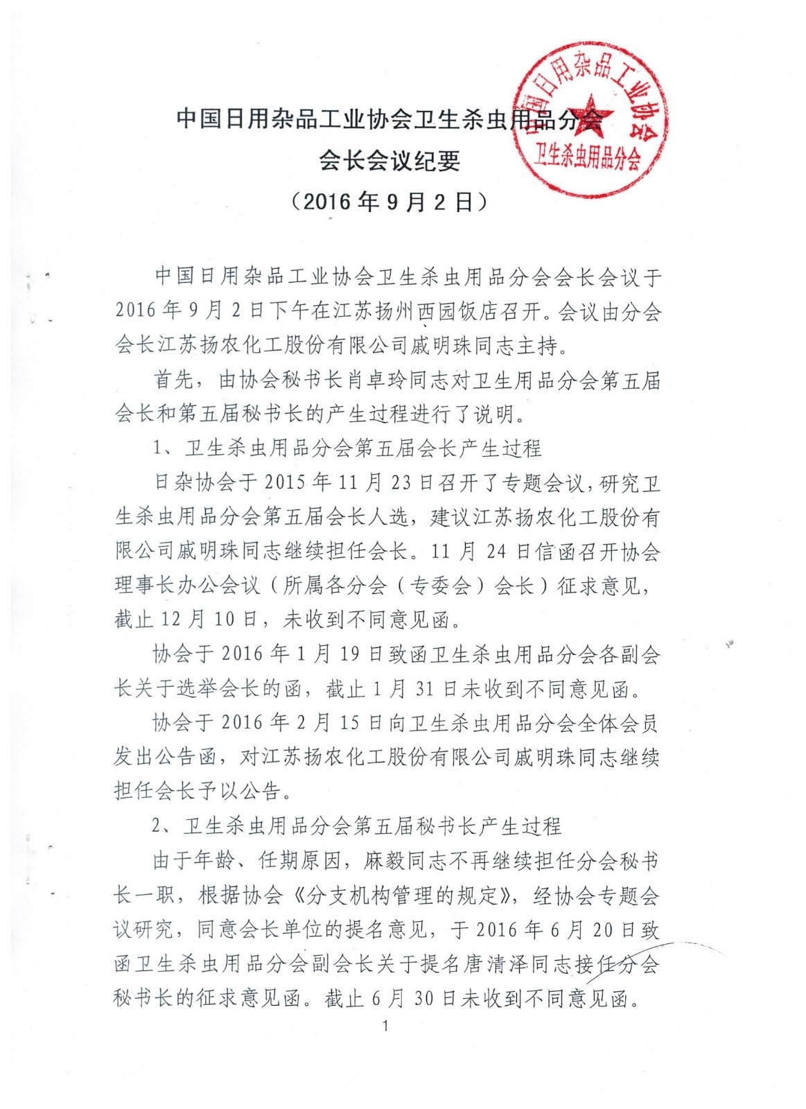 中国日用杂品协会卫生杀虫用品分会会长会议纪要